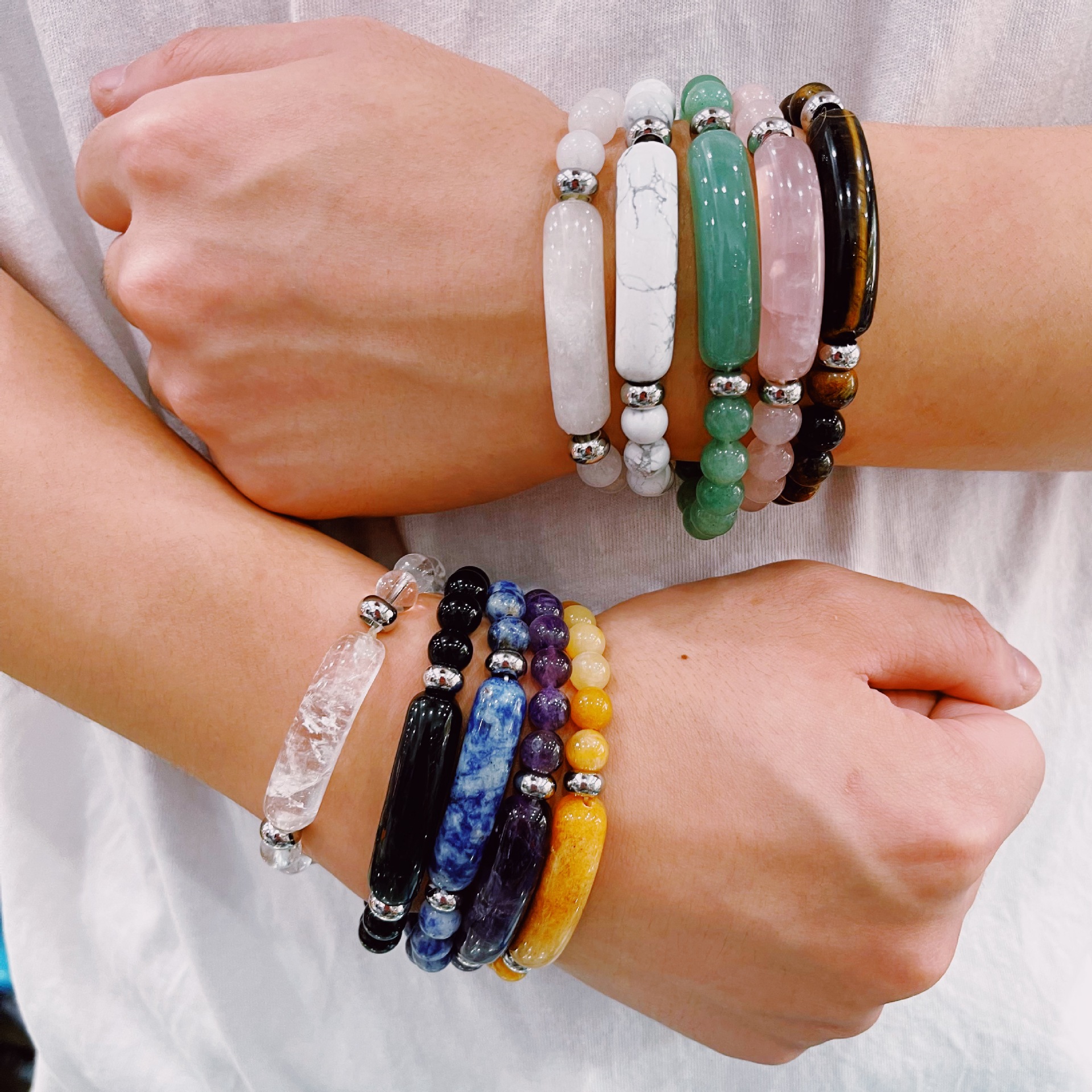 欧米の天然石ブリッジブレスレット弾力ビーズ瑪瑙ヨガ水晶ブレスレット天然石エネルギー手串