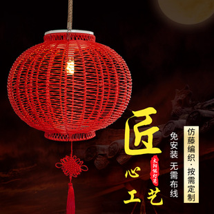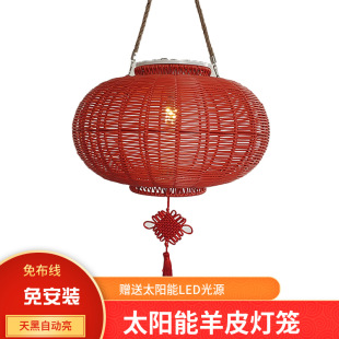 メーカー直販赤提灯太陽エネルギー装飾灯廊下屋外庭園シャンデリア手芸編みランプカバー卸売り