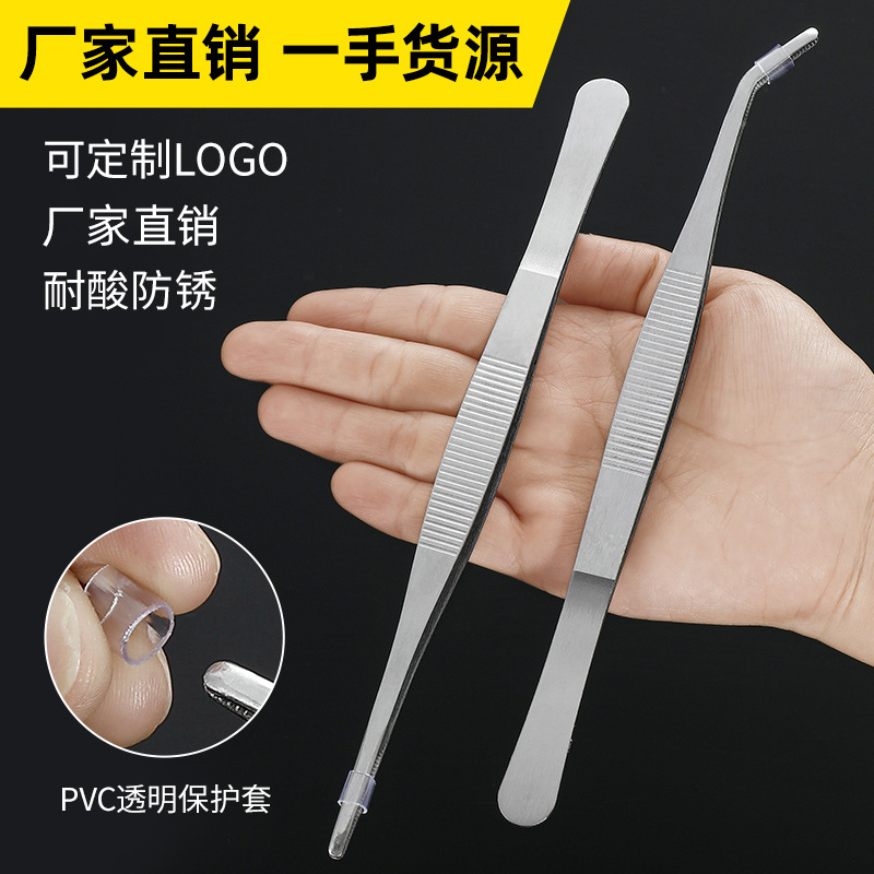ステンレスピンセット304厚いドレッシングピンセット組織ピンセット茶ピンセット園芸ピンセット直丸エルボ長ピンセットクリップ