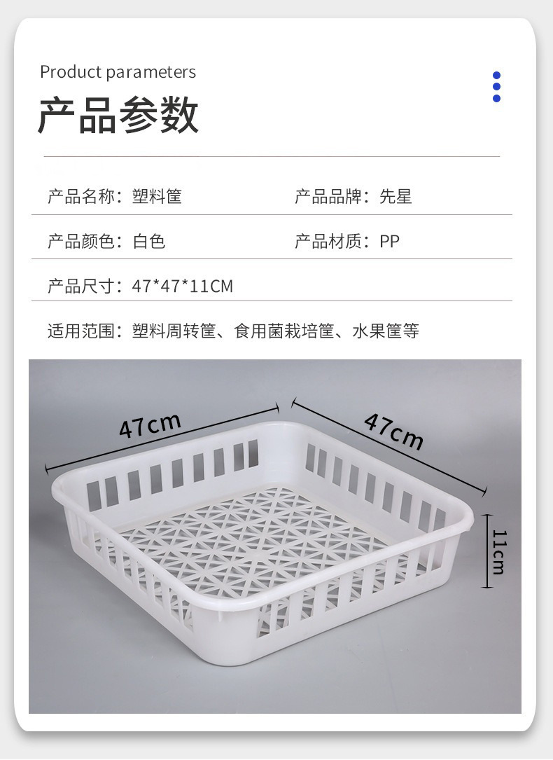 プラスチック製カゴ、カスタム野菜カゴ、食品グレードきのこカゴ、組織培養トレイ、消毒カゴ、苗育成カゴ、回転カゴ、回転箱