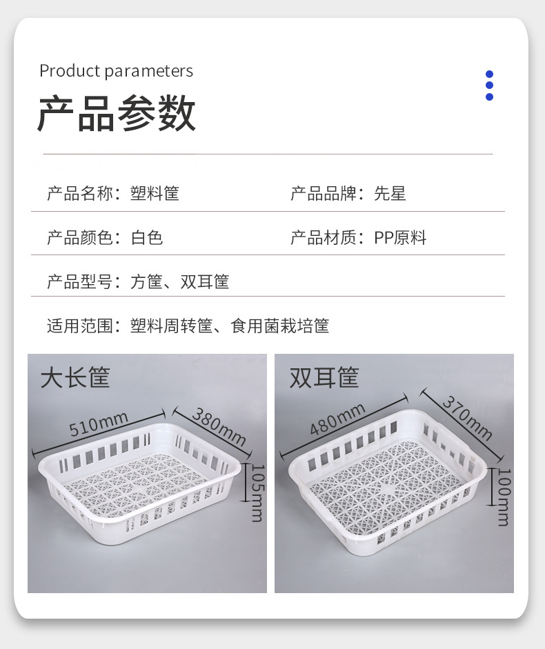 食用菌プラスチック籠キノコ籠長方形滅菌籠組培トレー消毒籠育苗回転籠卸売り