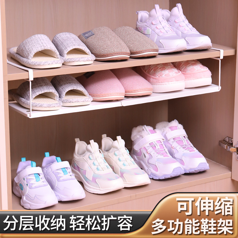 简易隔板鞋托收纳可伸缩家用下挂式鞋柜分层省空间隔板鞋架置物架