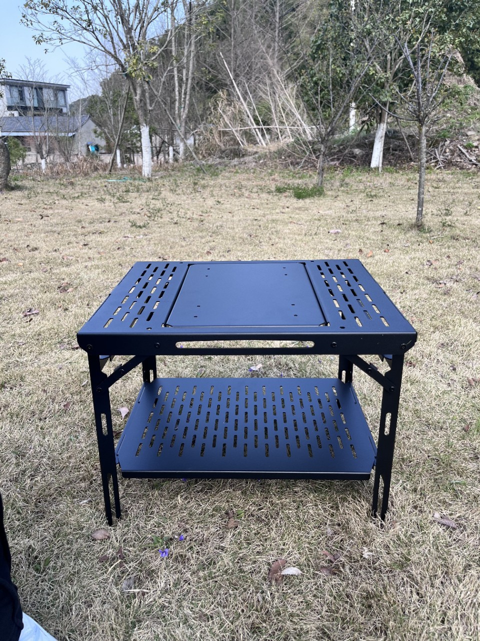 クロスボーダースポットアウトドアキャンプ折りたたみテーブル二層バーベキューテーブル多機能収納超軽量コンビネーションテーブルアルミタクティカルテーブル