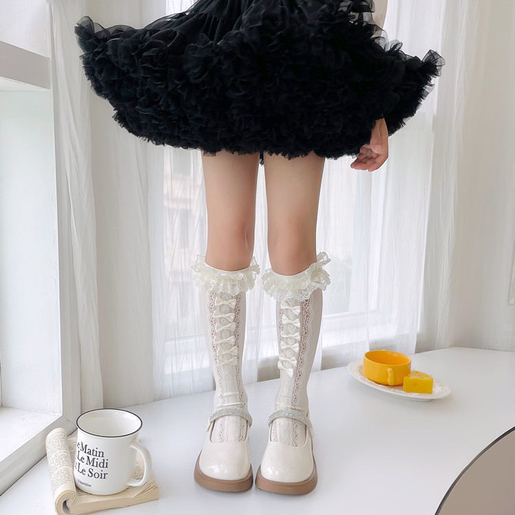 小腿袜系列L与XL都是同款。筒袜不分身高,小腿穿着效果为过膝。中大童穿着效果不过膝