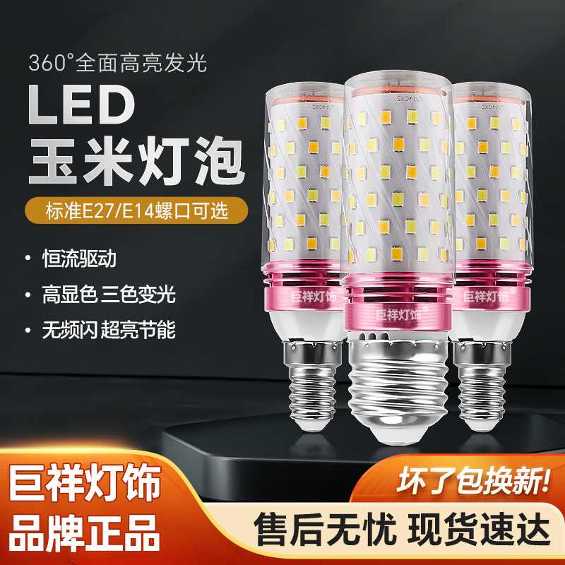 巨祥超亮led電球e27E14ねじ口三色変光省エネランプトウモロコシランプ家庭用シャンデリア光源