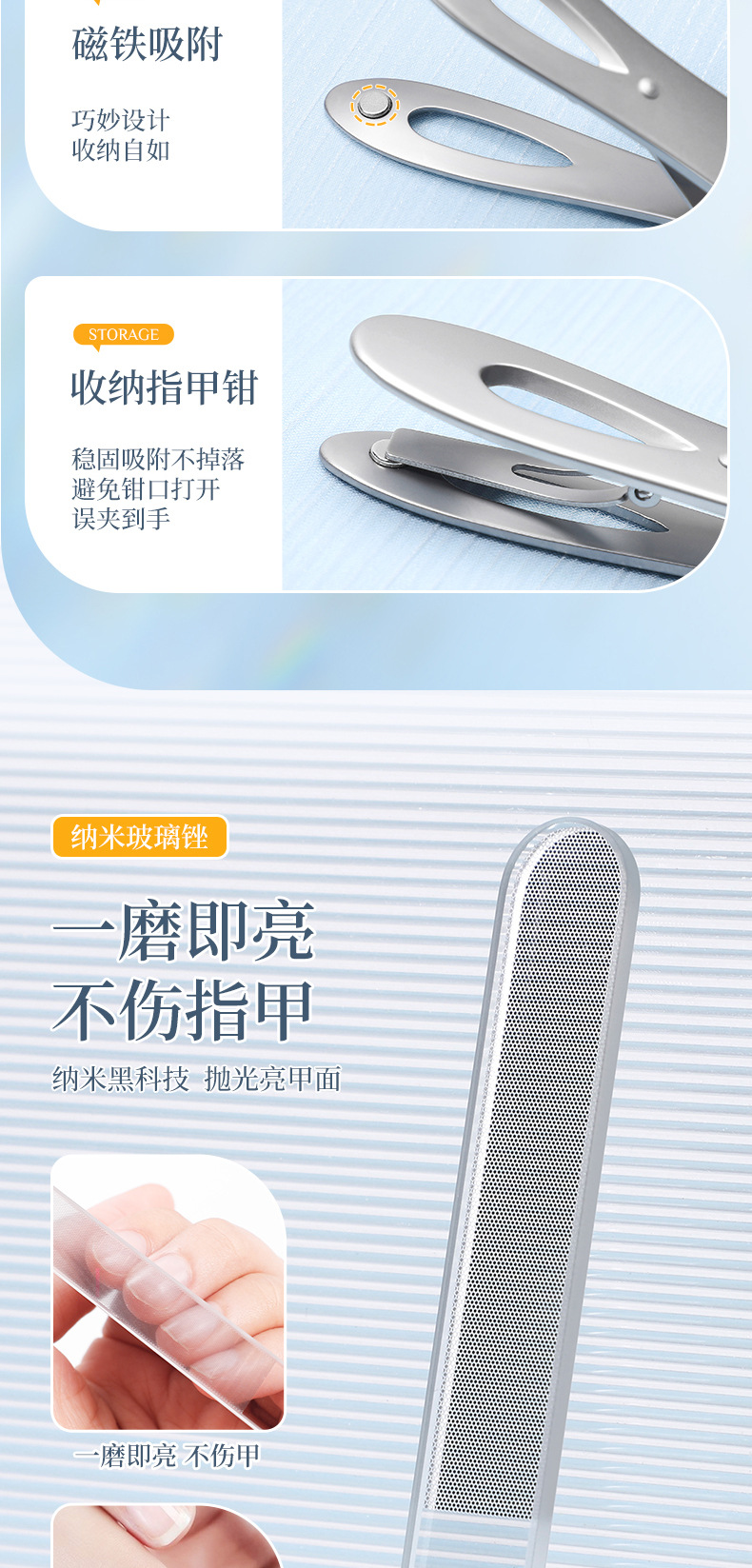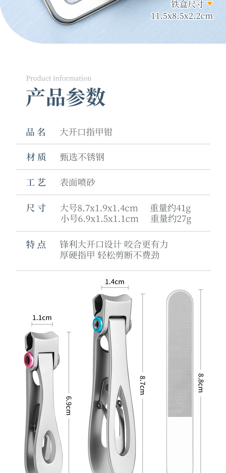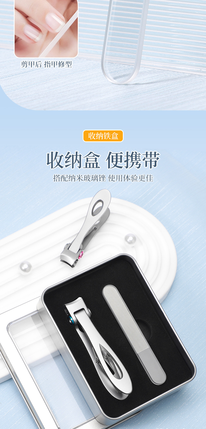 可代发不锈钢粉末指甲钳 家用便携指甲剪 美甲工具套装喷砂指甲刀