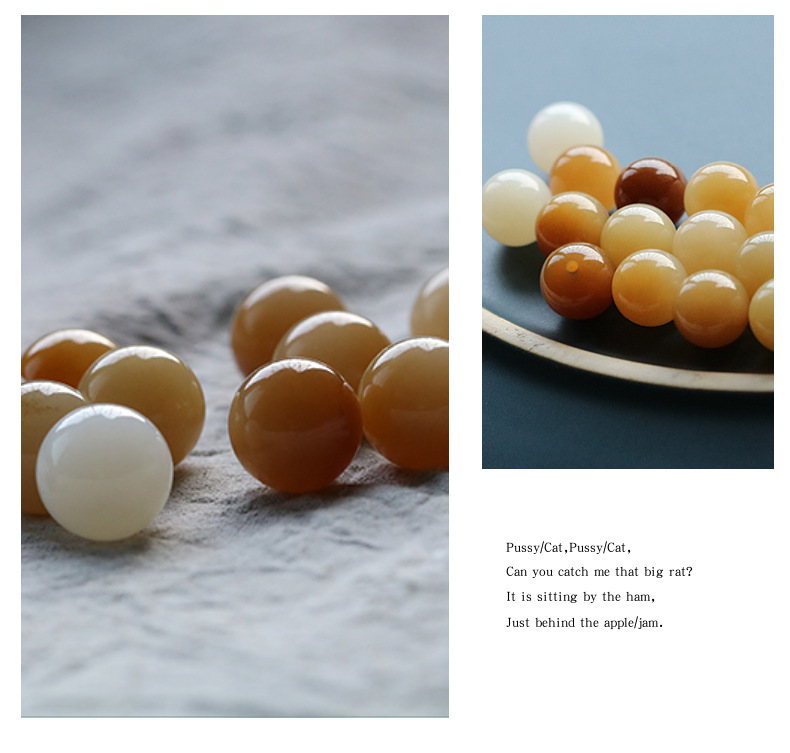 天然新疆和田玉且末糖料黄金糖圆珠散珠子diy半成品手串项链批发