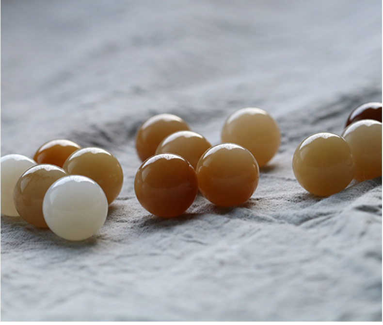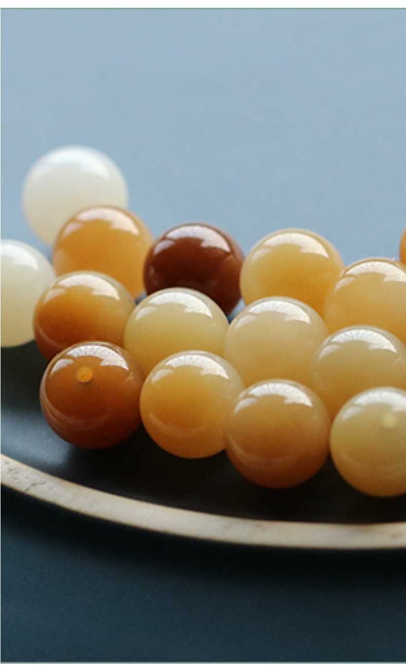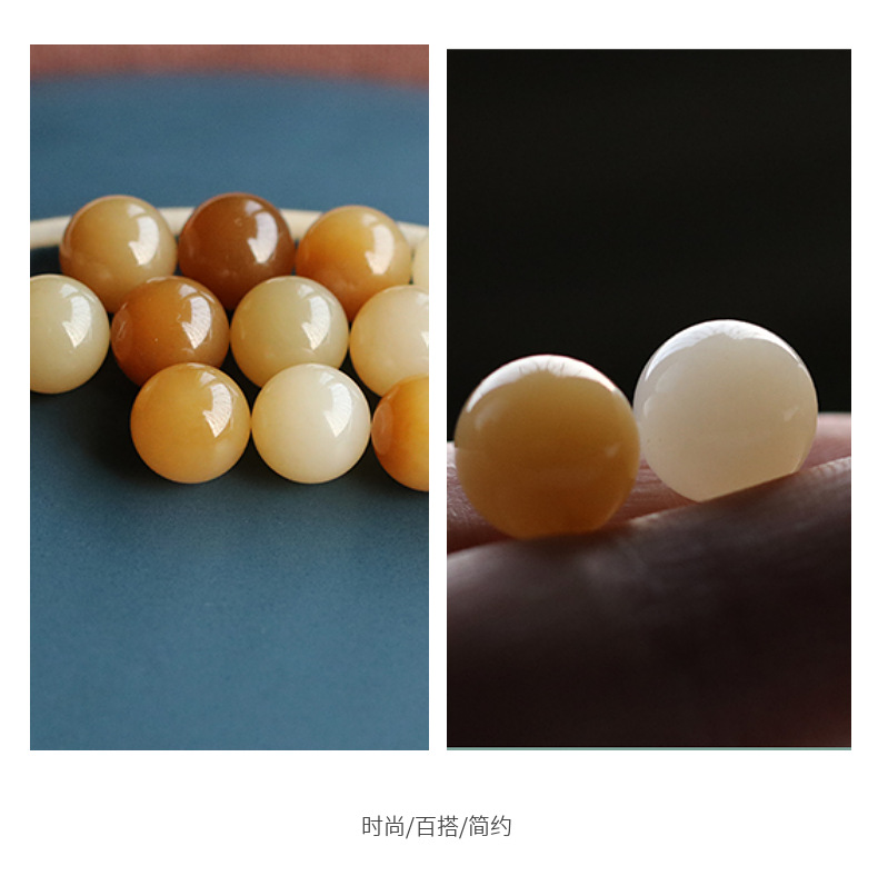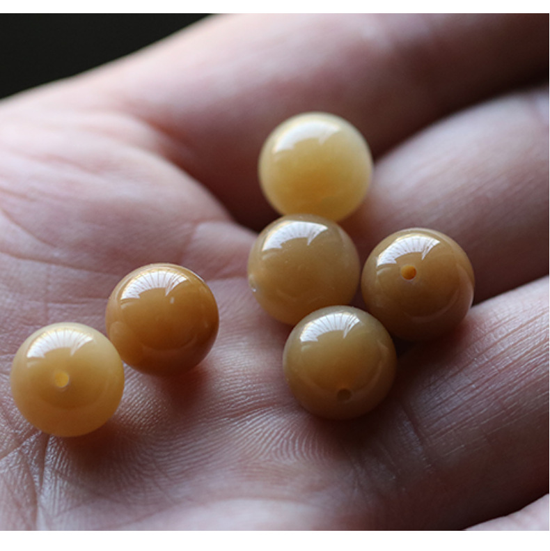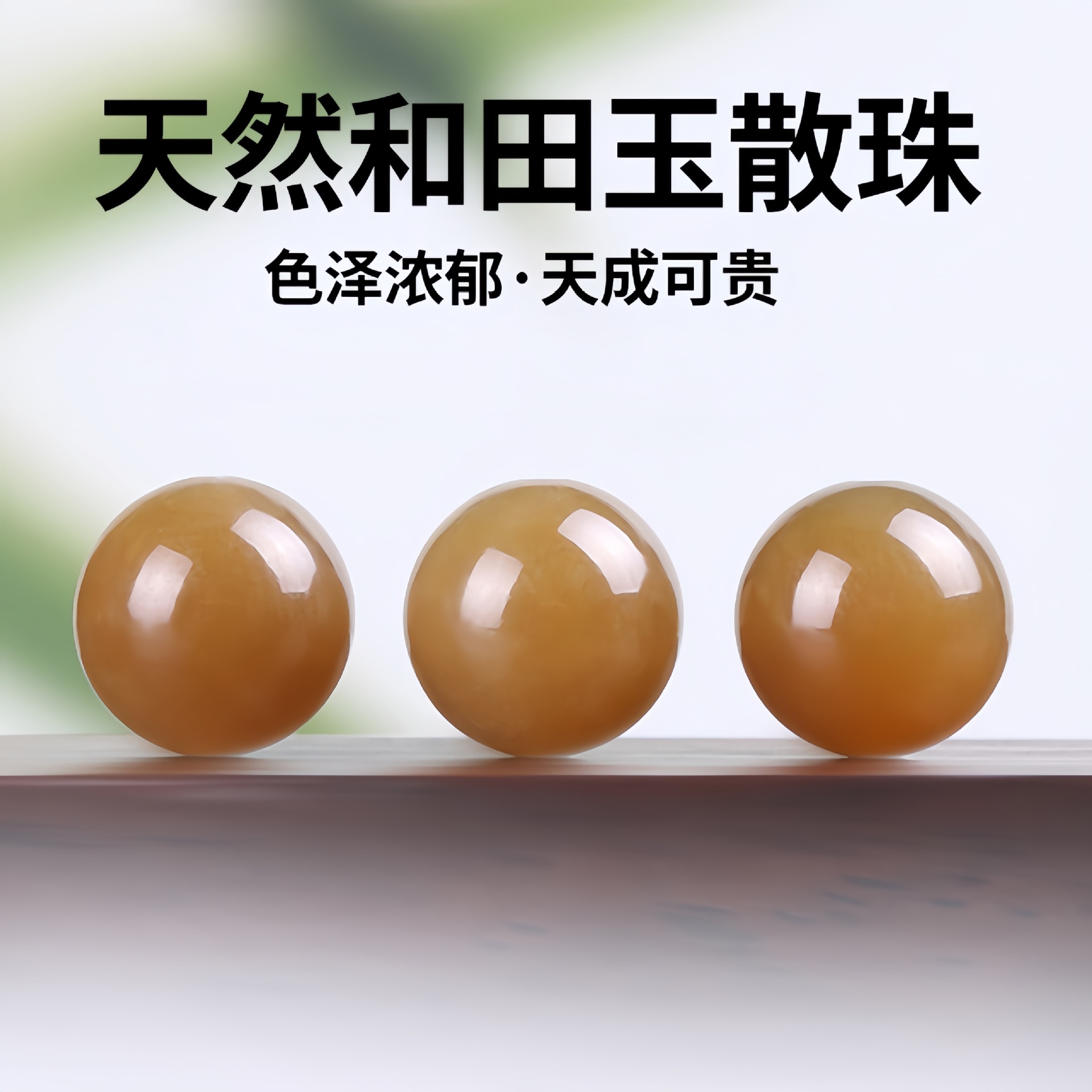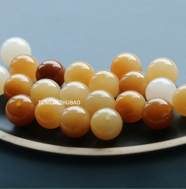 天然和田玉黄糖玉圆珠通孔串珠DIY配饰男女通用颜色随机糖玉散珠