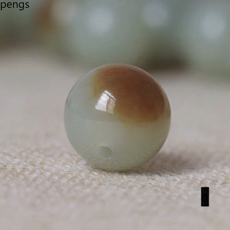 涛高品质和田玉散珠浅糖色圆珠且末糖文玩手串配珠单颗和田玉珠子