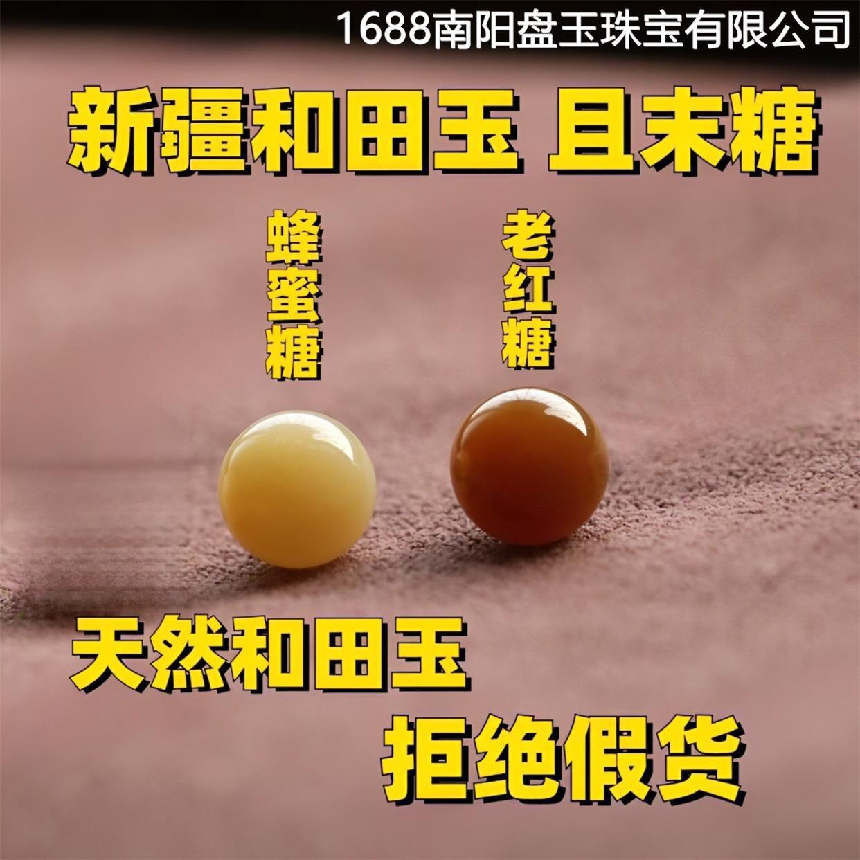 天然新疆和田玉且末糖料圆珠散珠蜂蜜水浅深色红糖单颗配件隔珠