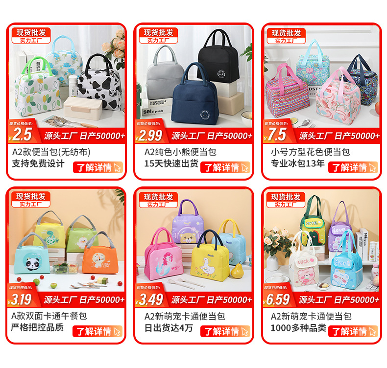 ファッション大容量弁当箱保温バッグ弁当箱ハンドバッグピクニックバッグ漫画学生弁当袋クロスボーダー卸売
