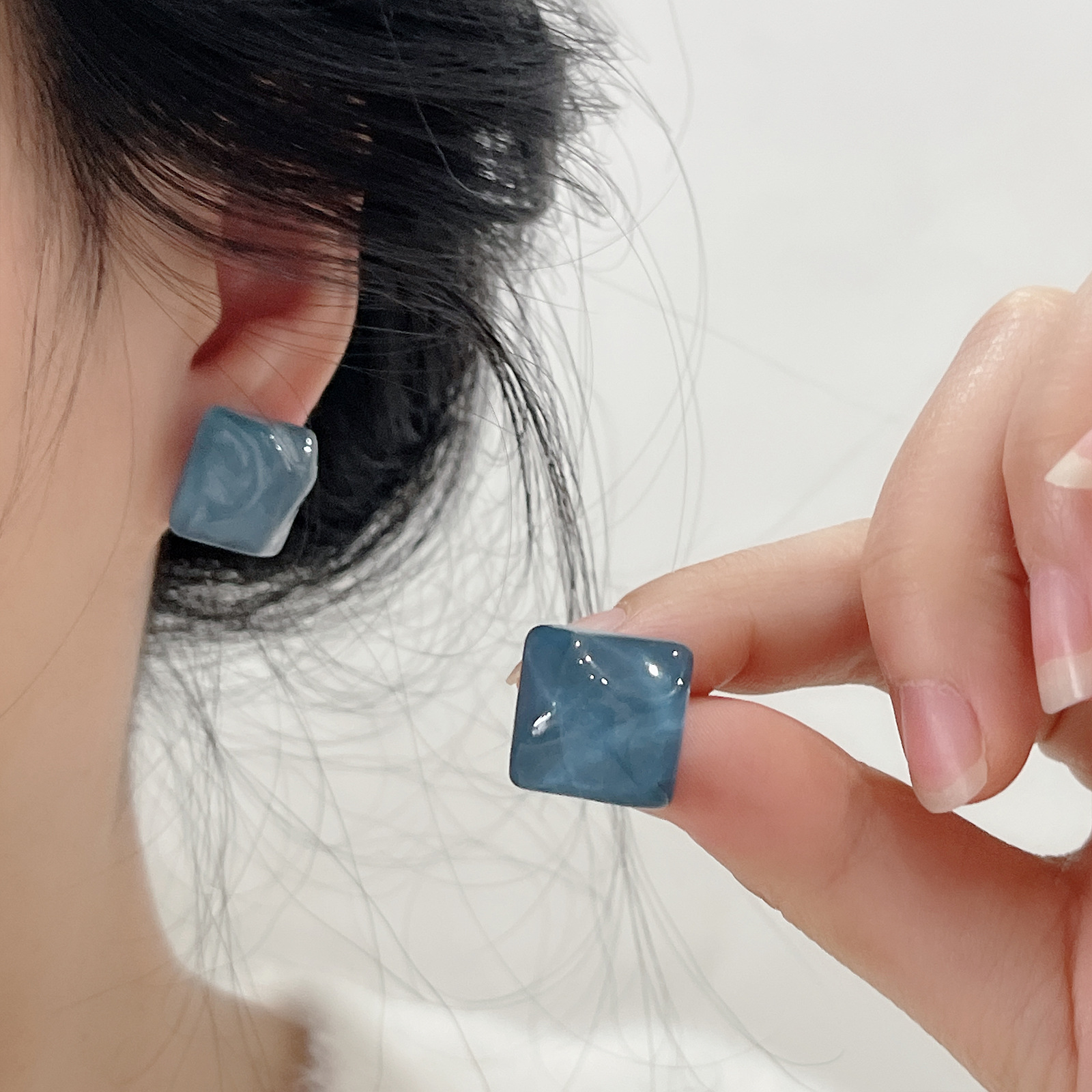 波が清らかで清新な青い四角の水の波紋のピアスの銀の針の小さい大衆はイヤリングの女性の夏の新型を設計します。