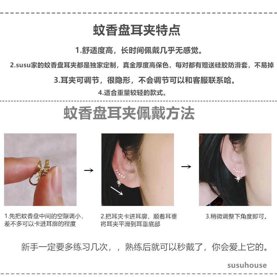 高級感のあるメタル蚊取り線香型イヤリング、フレンチスタイルのイヤークリップ、穴を開けずに着用できるイヤーアクセサリー、シンプルでファッショナブルで多用途です。