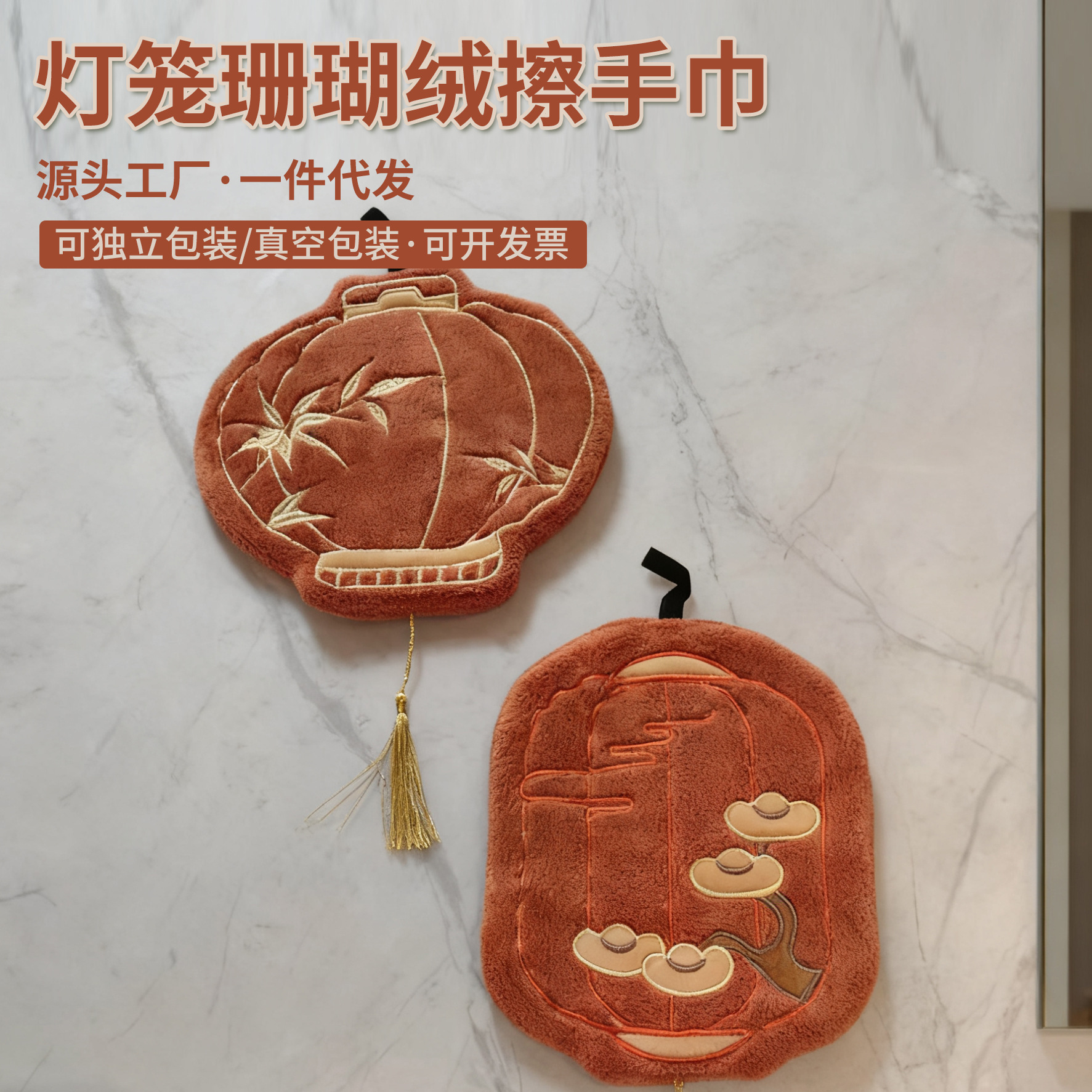 灯笼擦手巾新中式可挂式厨房卫生间擦水抹布速干珊瑚绒清洁小毛巾