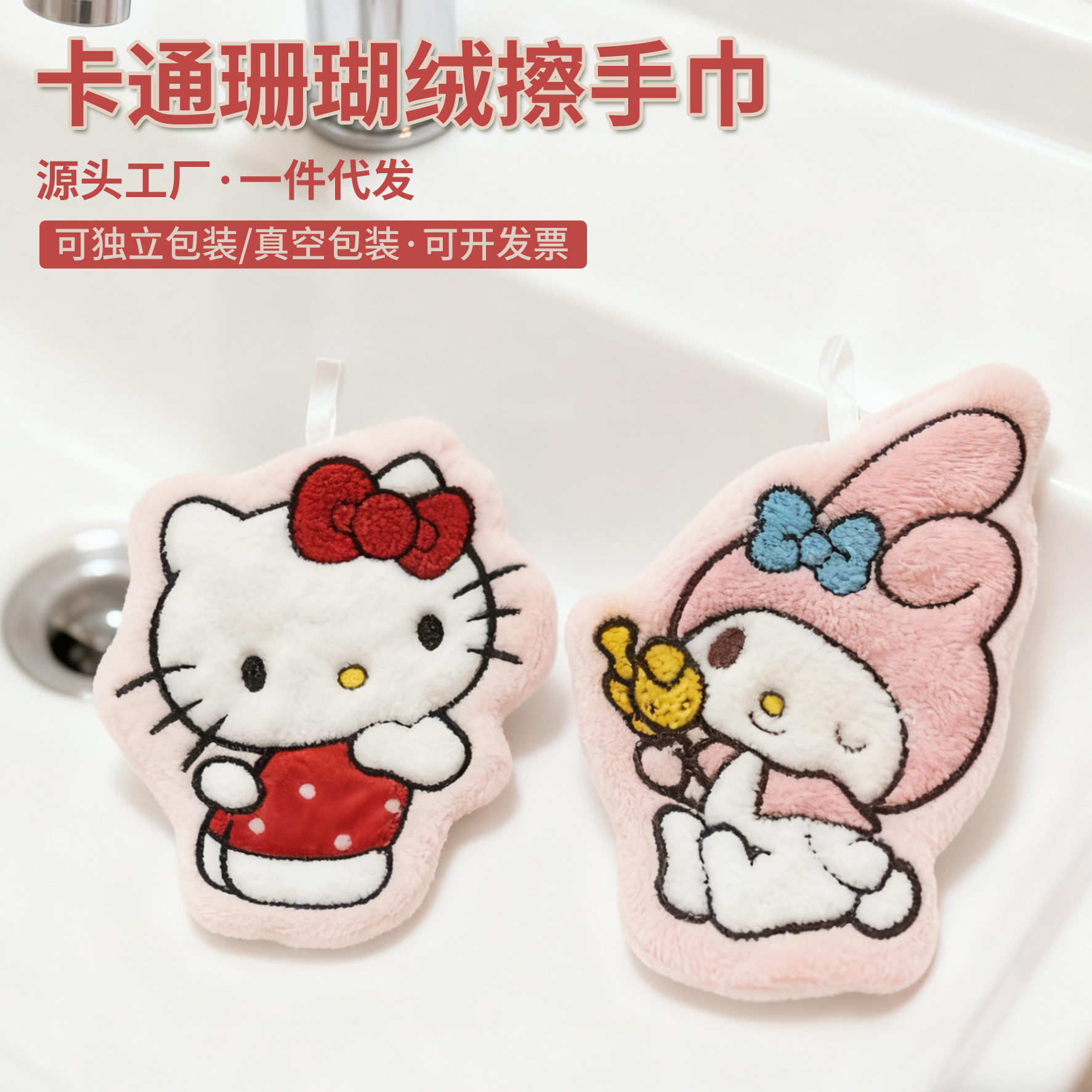 批发美乐蒂擦手巾家用珊瑚绒吸水擦手布可挂式儿童可爱卡通手帕