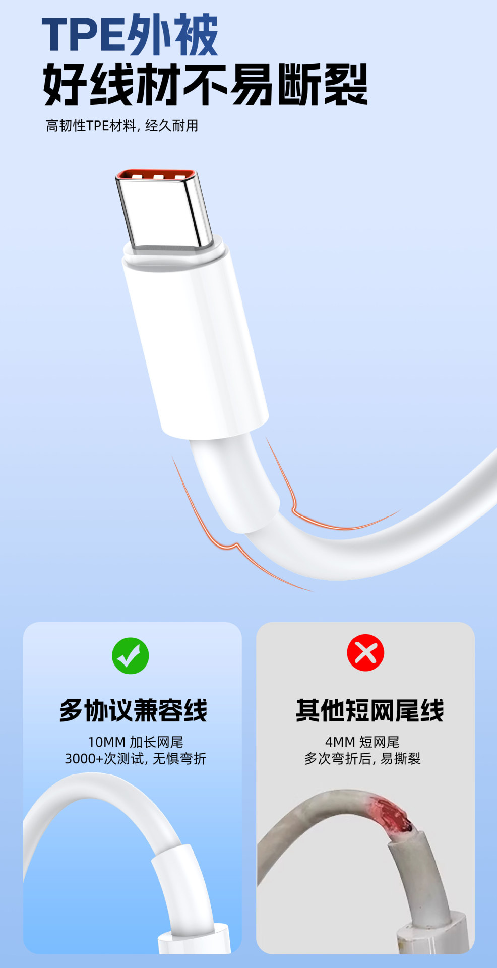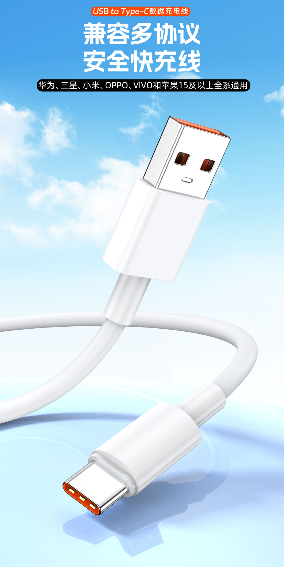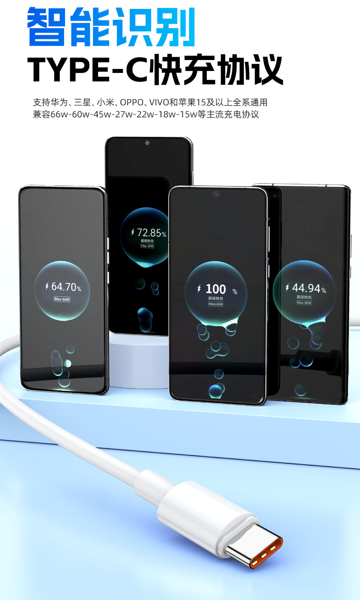 Typecデータケーブルは華為データケーブル安卓120W充電線6aフラッシュ充電栄光超速充電線を適用する