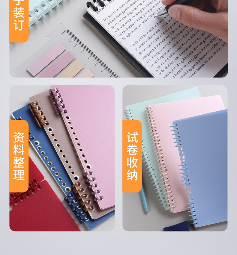 30mm大型ルーズリーフリングバインダー 30穴 A4 プラスチックカラー カット可能 B5/A5PP リングバックル 再利用可能