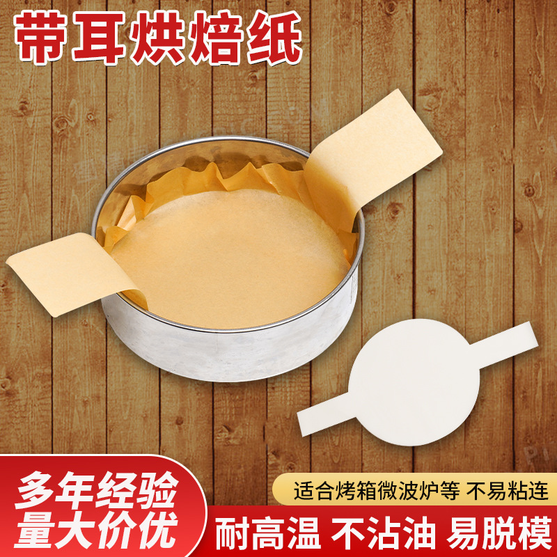 跨境带耳烘焙纸 双耳蛋糕脱模纸 厂家圆形蛋糕锅衬垫纸纸托硅油纸