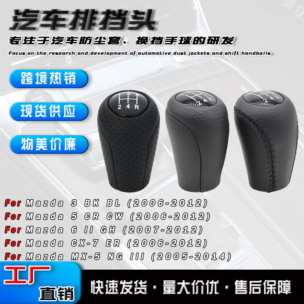 マツダ3、5、6、CX7、MX5対応、レザー製シフトノブ、ギアシフトヘッド、自動車部品