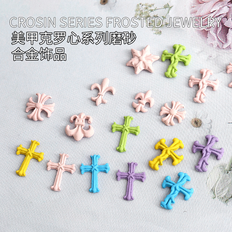 克罗心美甲饰品网红爆款y2k辣妹十字架彩色马卡龙金属合金指甲钻