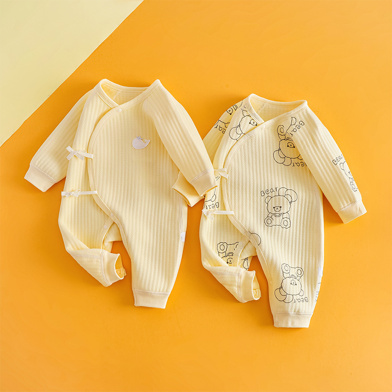 新生儿秋冬季连体衣宝宝系带三层保暖夹丝无骨哈衣婴儿爬爬服新款