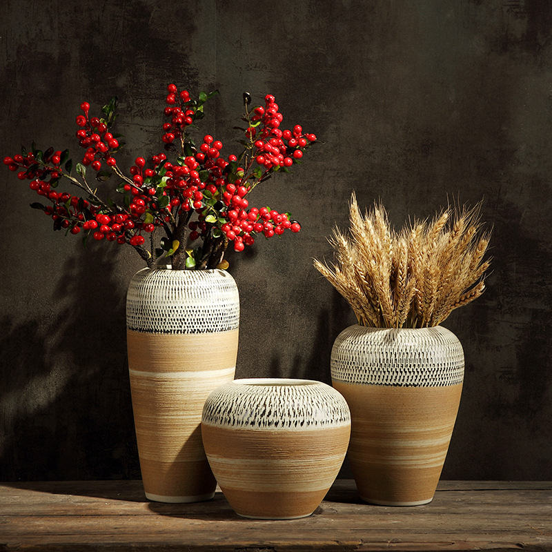 モダンシンプルデスク花瓶レトロ別荘ホテルリビング玄関セラミック家庭陶器ポット植木鉢飾り大サイズ