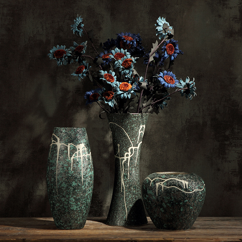 景徳鎮の陶磁器の粗い陶器のアメリカの花瓶の食卓の乾いた花の客間の生け花の置物の手作りの復古は古い植木鉢を作ります。