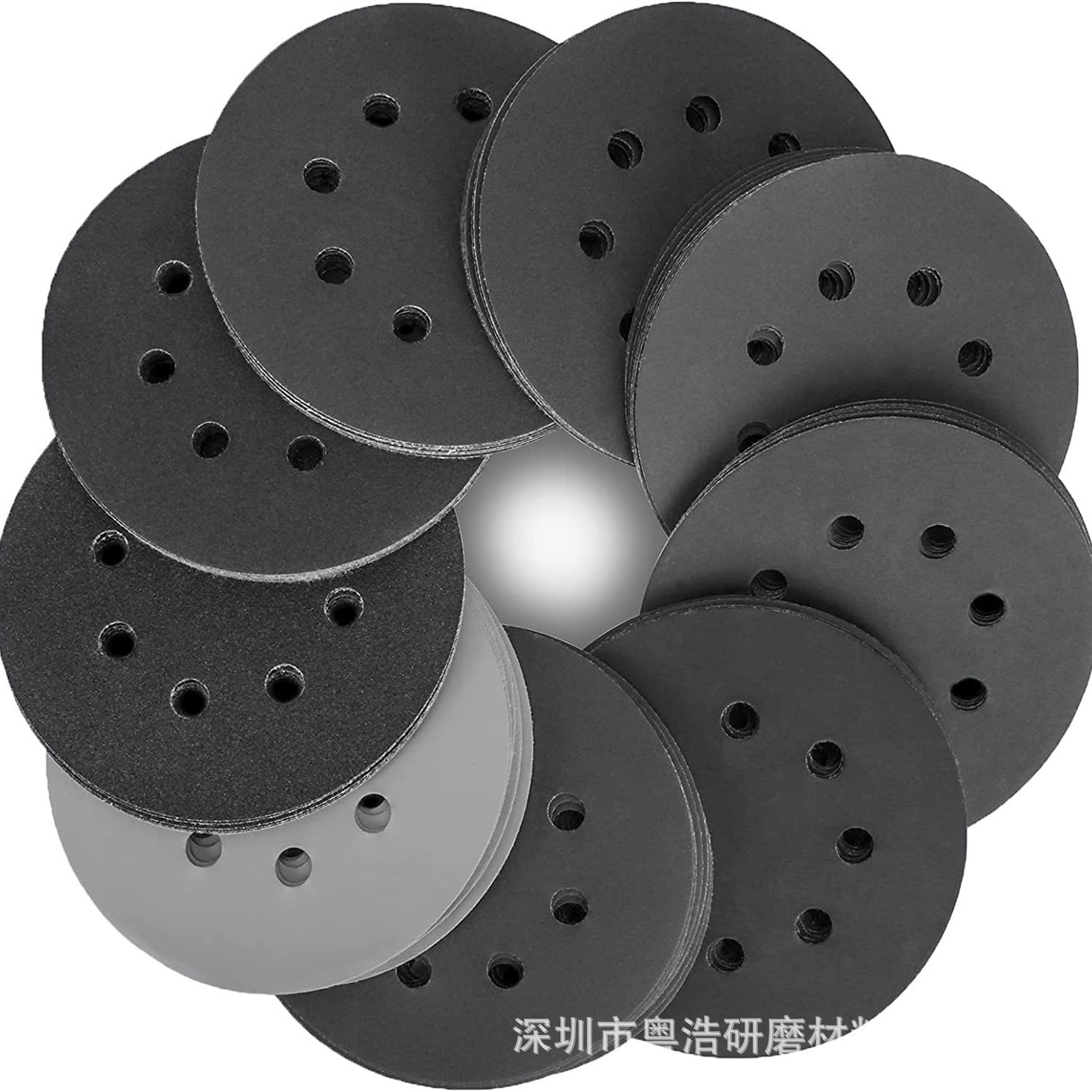 国境を越えたソース5インチ8穴円盤砂植毛炭化ケイ素水磨黒砂125mm自己接着盤背毛砂紙