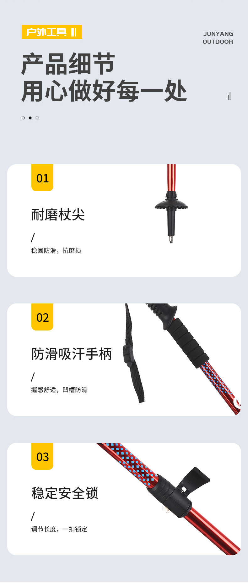 クレイアルミニウム合金杖登山杖三節杖屋外徒歩旅行用品メーカー直販卸売り