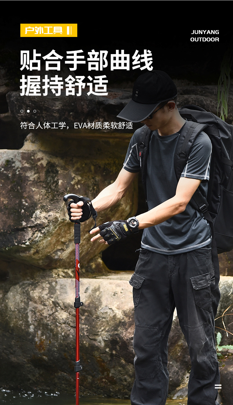 超硬碳素伸缩登山杖男女户外登山防滑户外伸缩碳纤维手杖批发