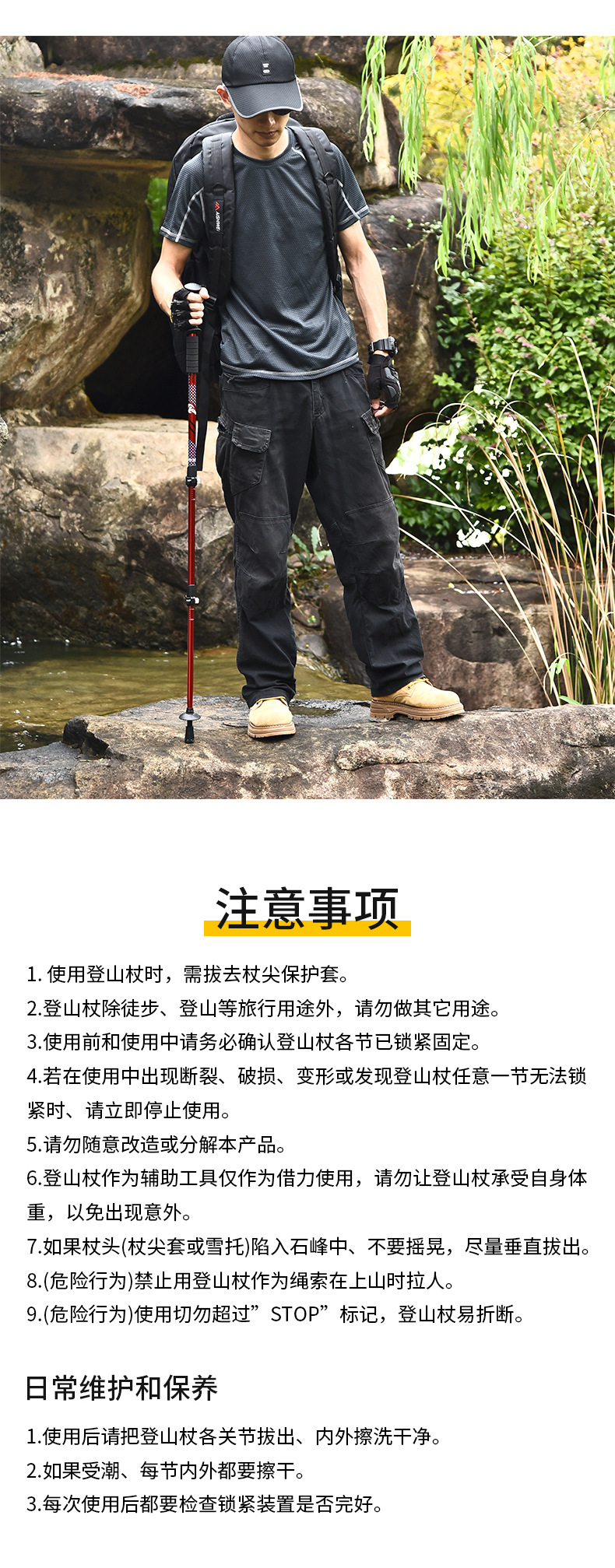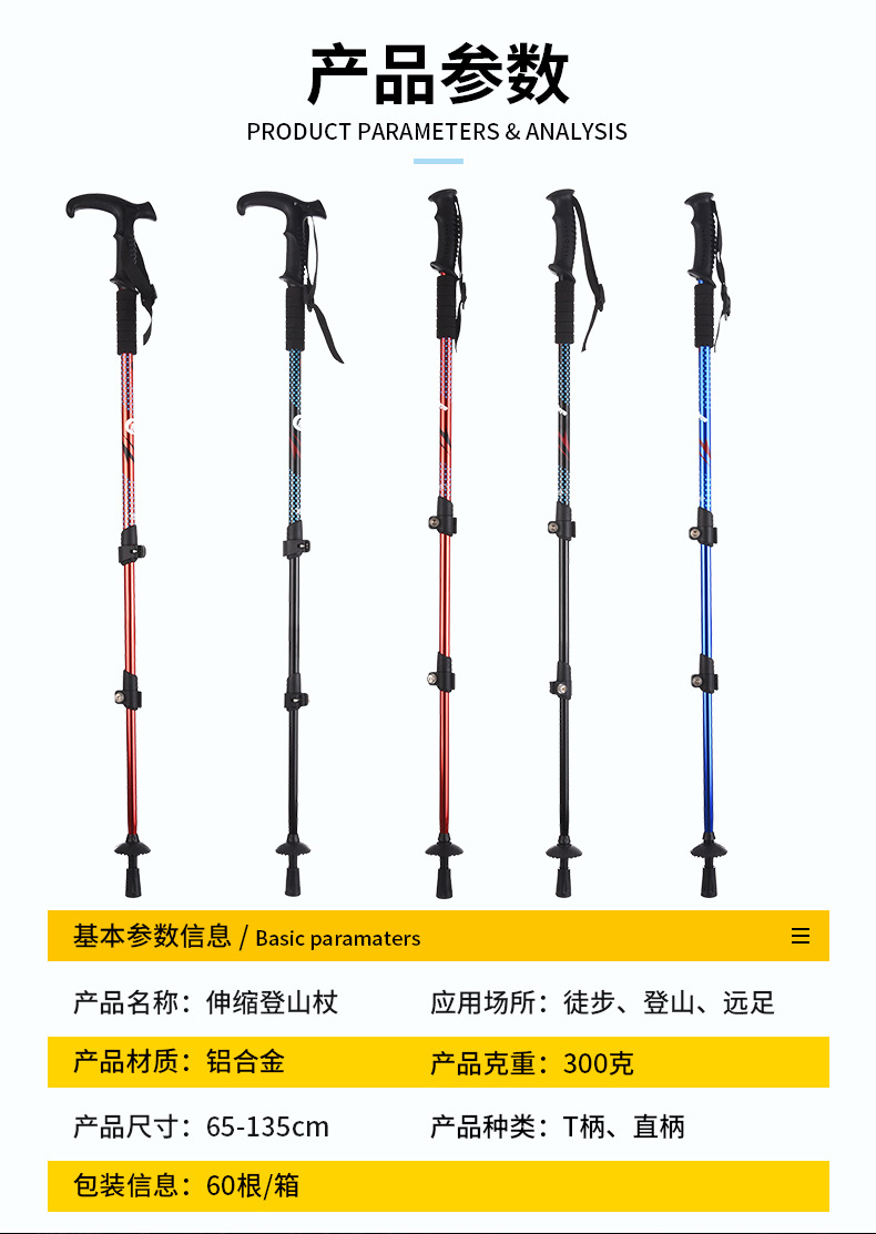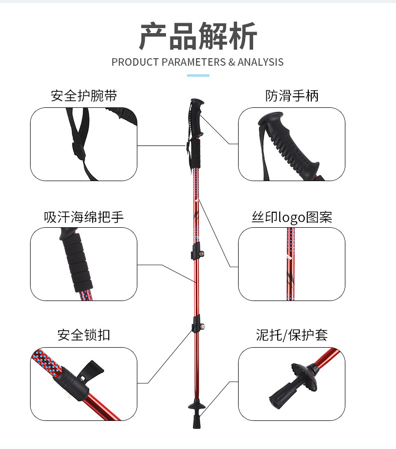 アルミ合金登山杖伸縮折り畳み登山杖滑り止め杖高齢者補強調整可能5本杖