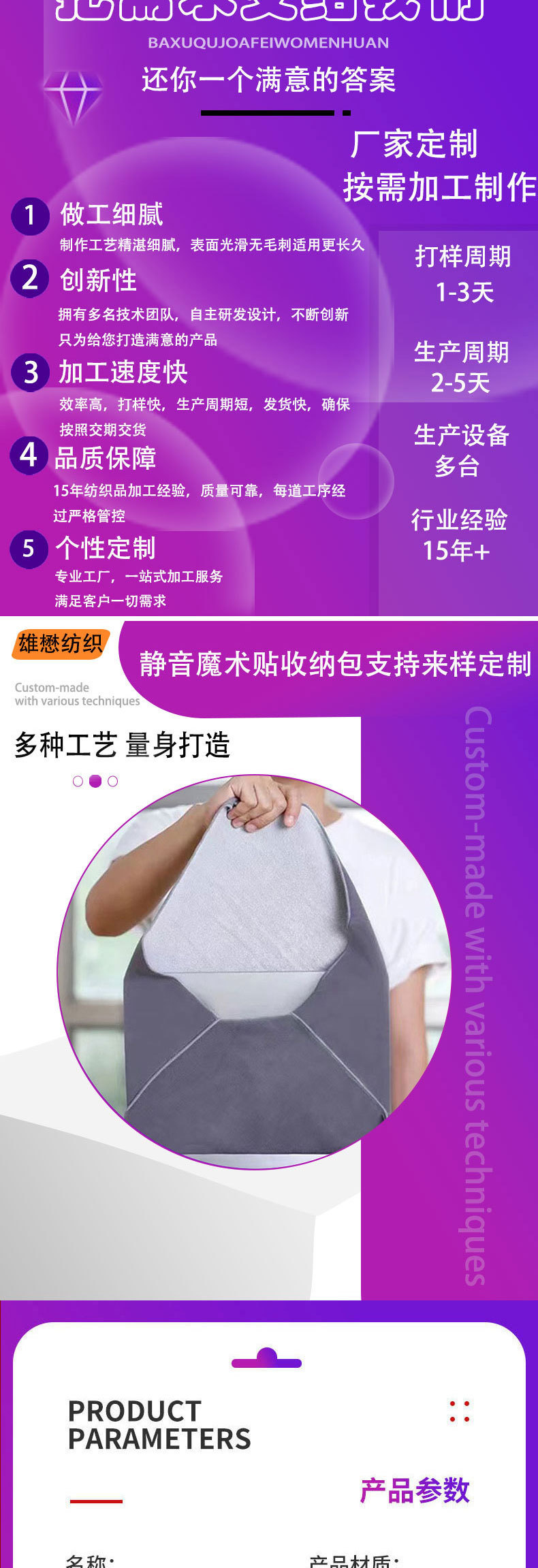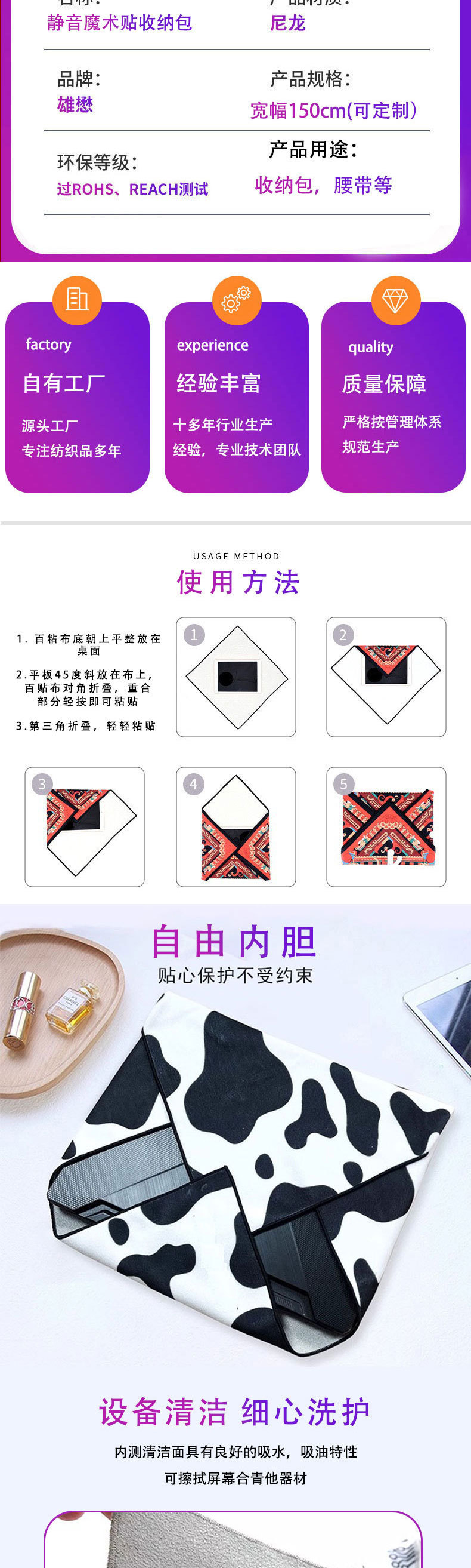 サイレントベルクロ、サイレント粘着布、両面複合印刷収納バッグ、ベルクロ付き起毛布卸売
