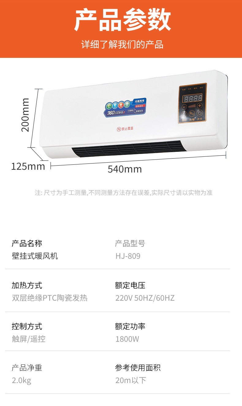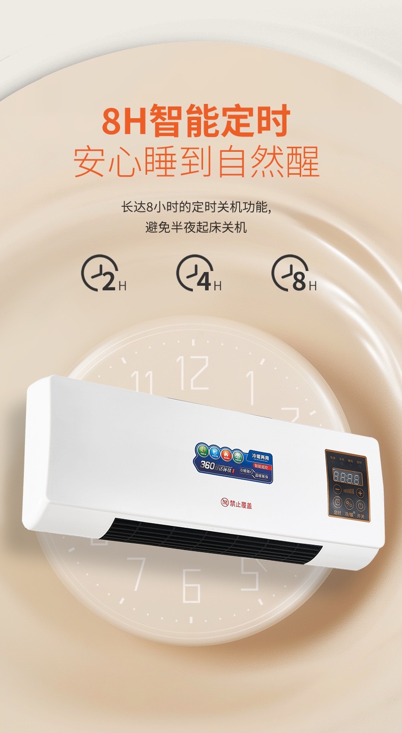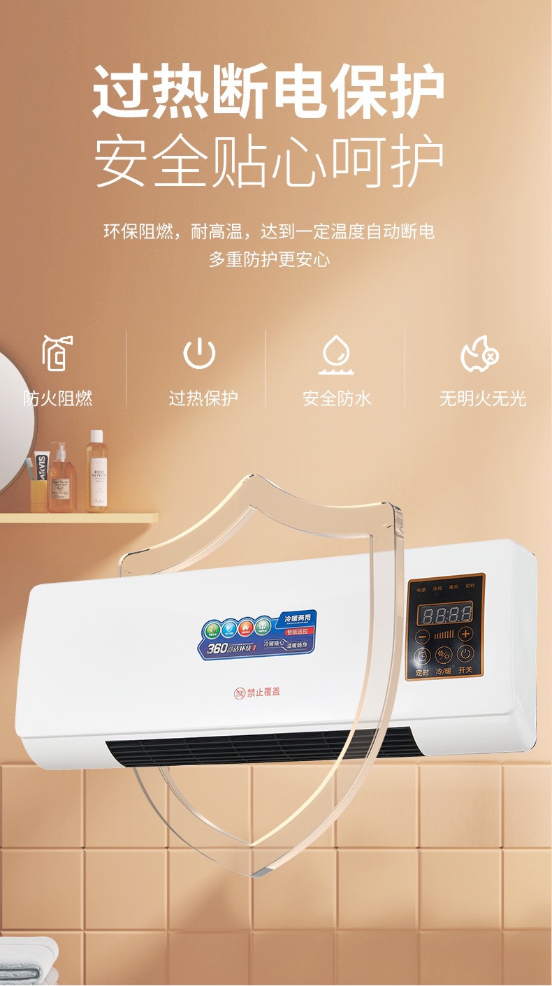 冷暖两用移动空调热风机浴室暖风机家用卧室壁挂式取暖器跨境美规
