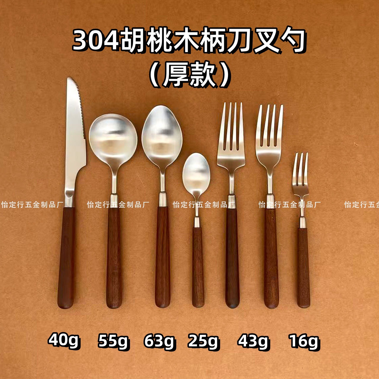 304胡桃木柄餐具不锈钢刀叉勺高档西餐厅牛排刀甜品勺子叉子批发