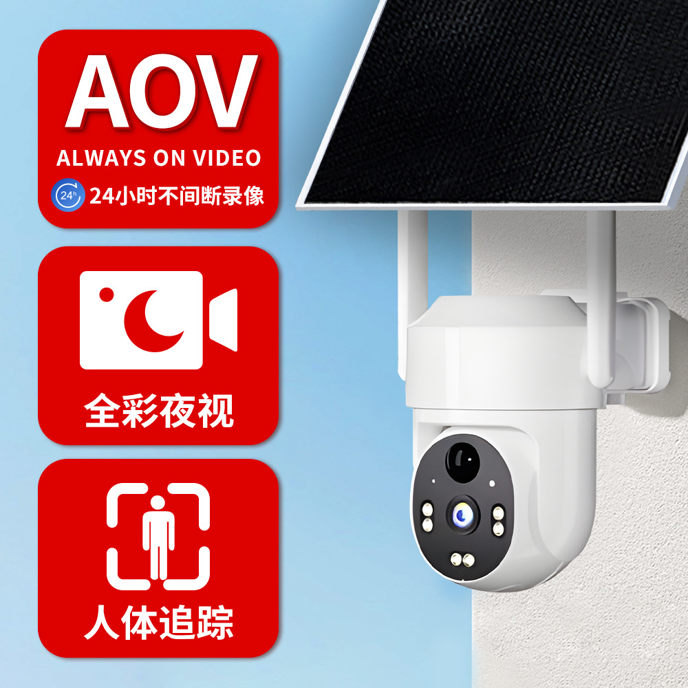 太阳能监控摄像头公司户外全景无死角无线室外多目监控AOV摄像机