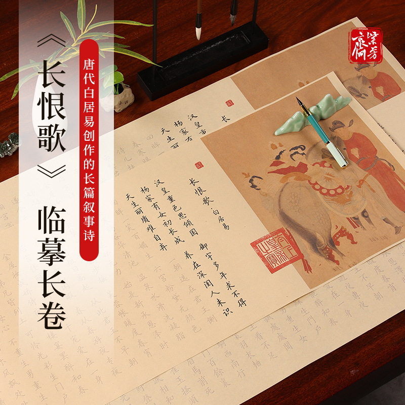 長い恨みの歌の字の帖の白居易の毛筆の書道は赤い字の帖の長い巻きの欧陽をまねて文征明の楷書を聞いて初めて学びます。