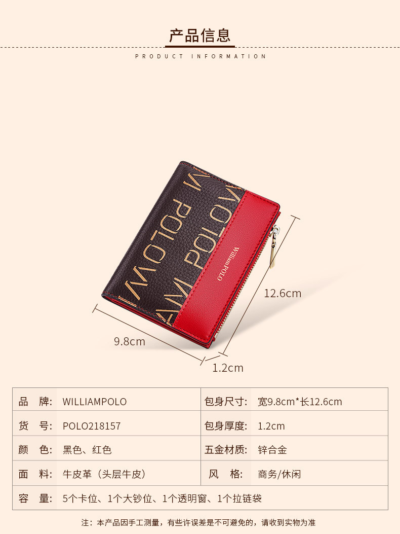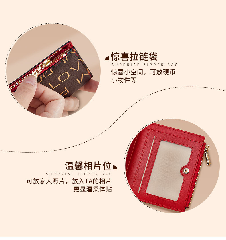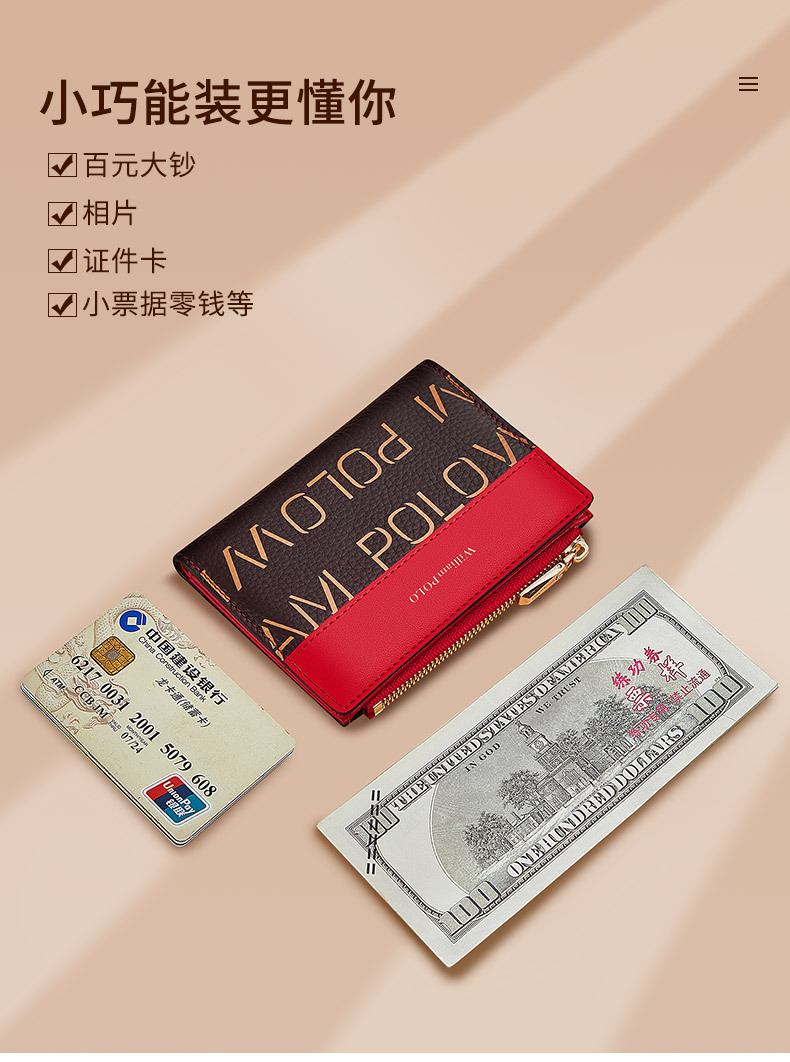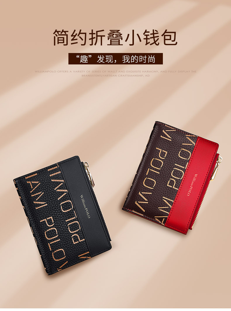 英皇ポール財布レディース盗難防止ブラシショート本革ファッション多機能運転免許カードカバン小銭入れ