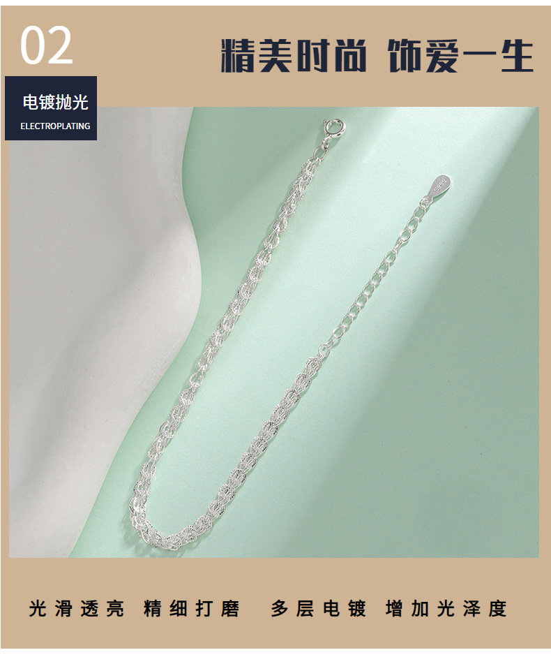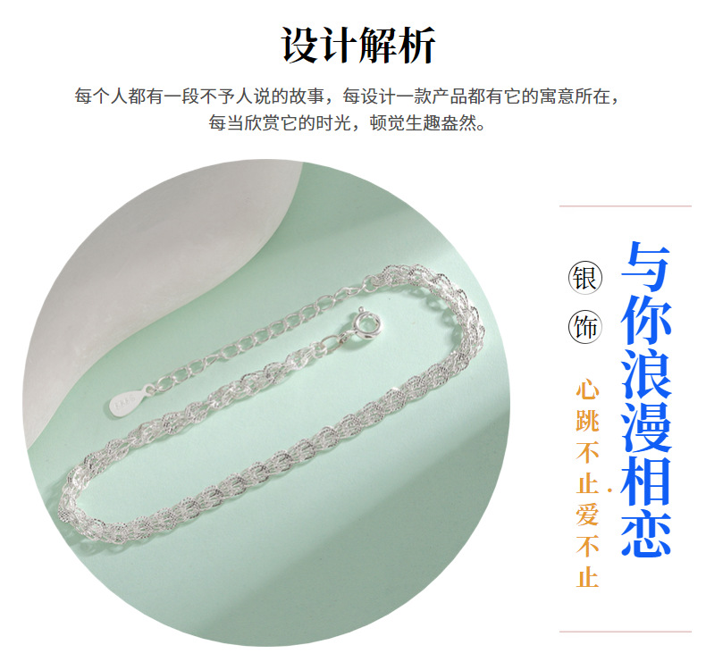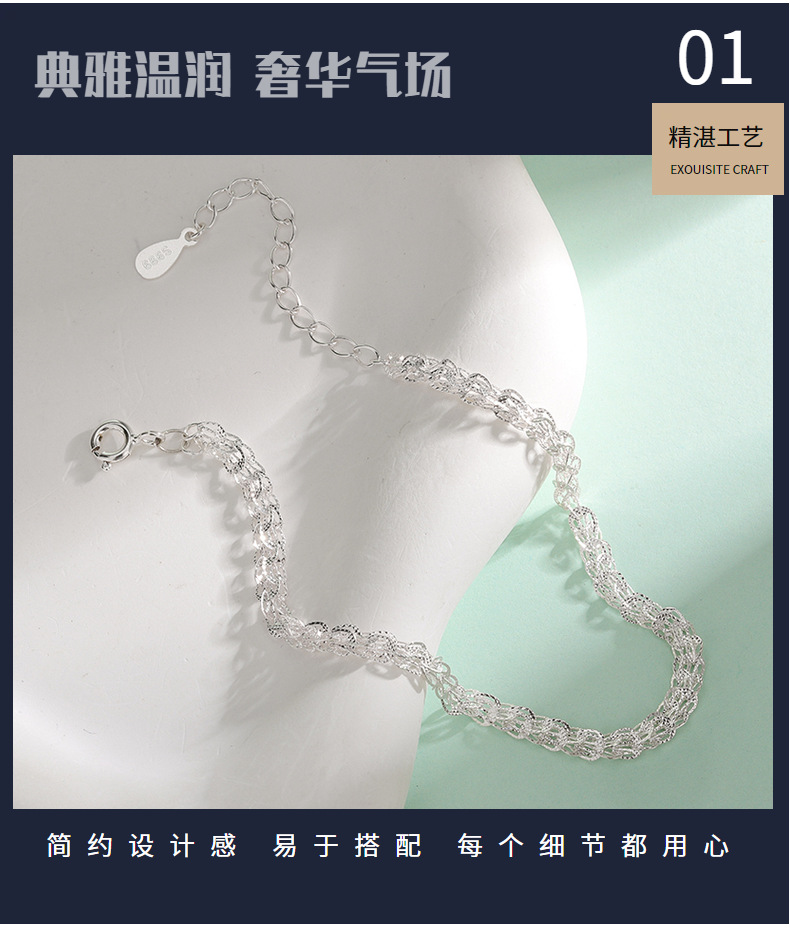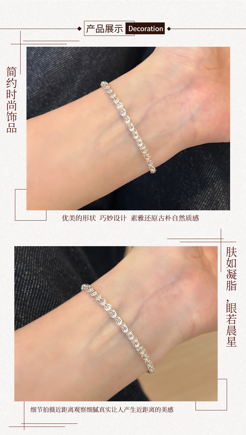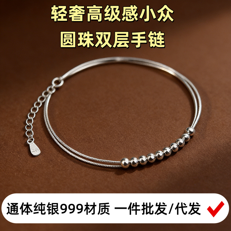 s999足银双层小蛮腰手链女送闺蜜手饰轻奢高级感ins小众手串批发