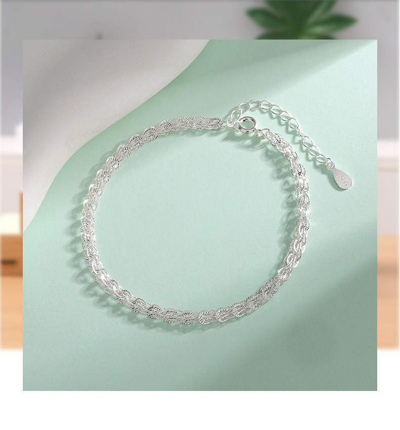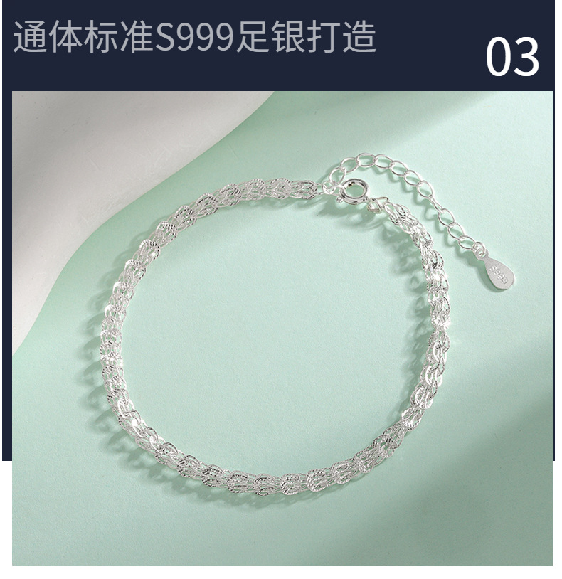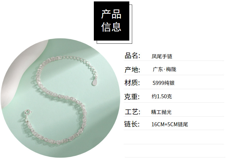S999シルバーフェニックステールブレスレット、ニッチデザイン、波紋模様、韓国風、親友チェーン、軽贅沢、高級感、星空のような輝き
