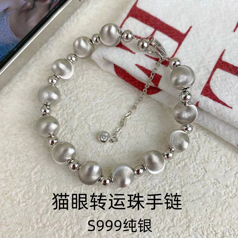 999純銀猫目石運命玉ブレスレット レディース 軽やかな高級感 多彩なデザインセンスのブレスレット 絶妙で高級感のある秋冬のハンドアクセサリー