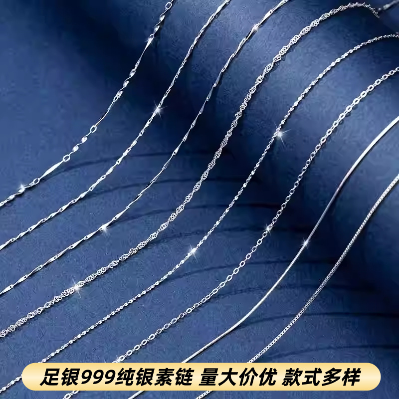 999純銀ネックレス レディース 星型クロスチェーン ボックスチェーン O字チェーン 水波チェーン シンプルチェーン 鎖骨チェーン アクセサリー 卸売