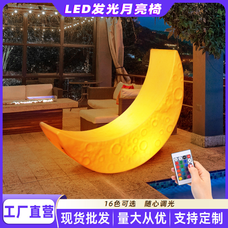 光る月の明かりの庭の寝椅子の三日月のイルミネーションの雰囲気のフロアランプのデザイナーの露店の屋外の明かりのソファーの椅子