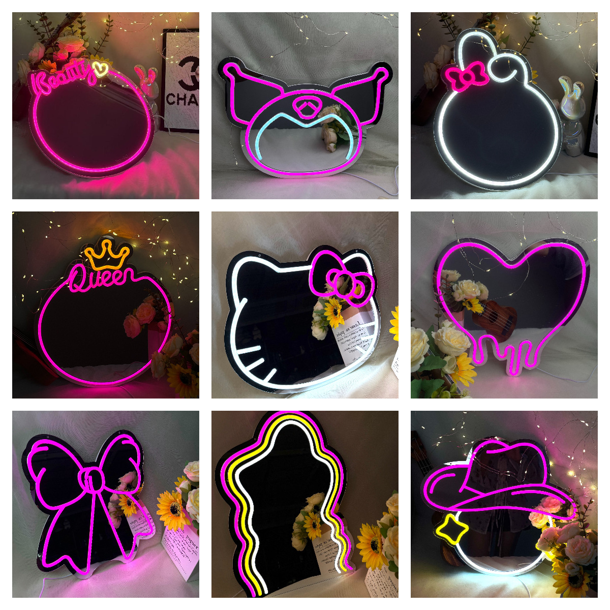 LEDクロスボーダーUSBミラーカラーライトネオンライト装飾ホーム雰囲気ライト型化粧鏡ナイトライト工場