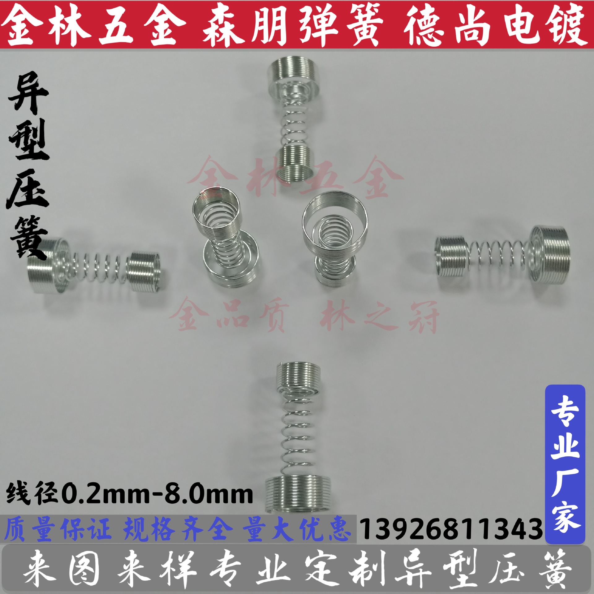 温馨提示:可随意定做任意尺寸弹簧,欢迎来图来样咨询客服。实际价格以跟客服沟通为准。谢谢!!金品质,林之冠。以优良的品质用心的服务让您满意!森朋弹簧有自家专业电镀工厂,多款多色供君挑选。
