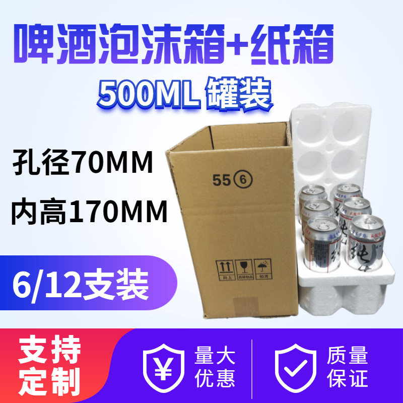 500ml缶ビール金銀花飲料泡箱6本12本泡箱宅配便転倒防止包装箱