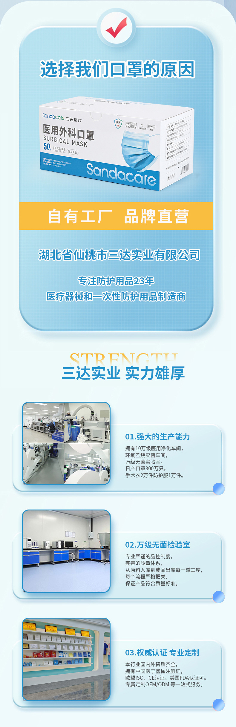 【防护效果】细菌过滤率(BFE)≥95%,有效过滤病毒细菌等