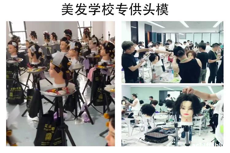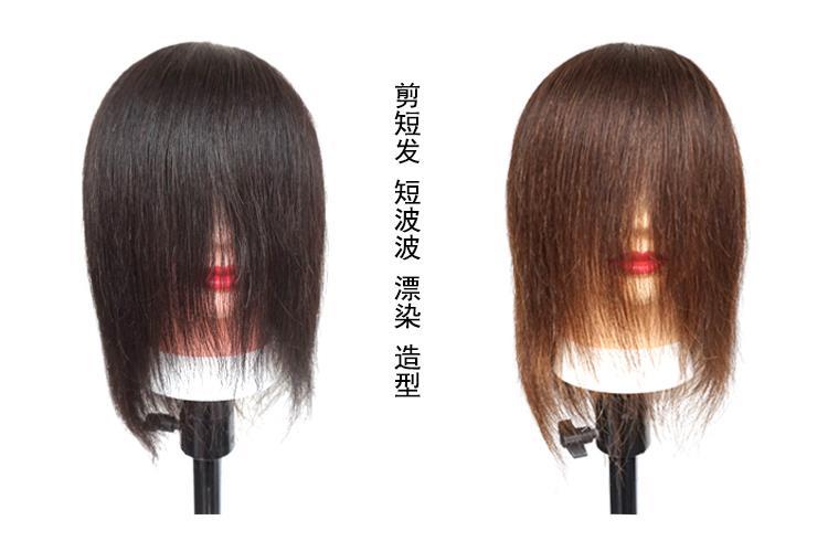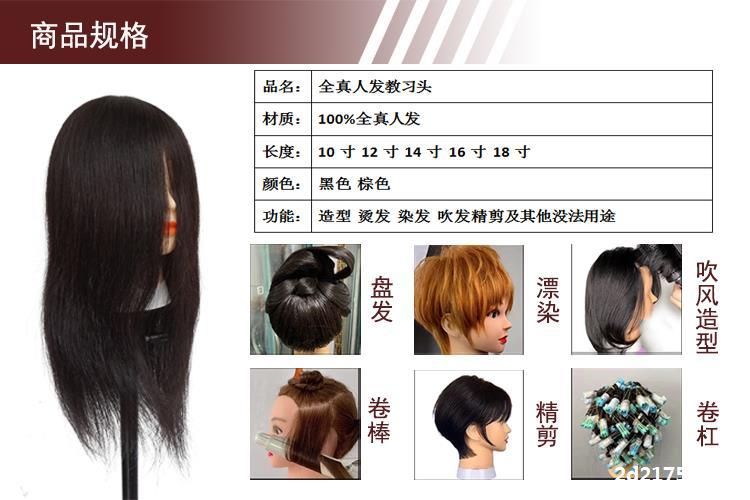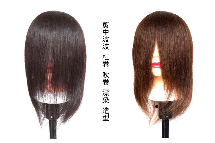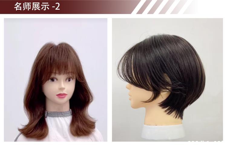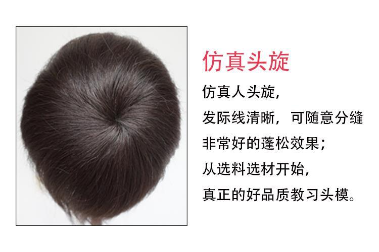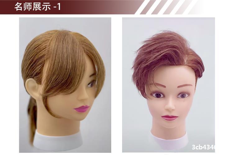 。全真髪の頭型はパーマをかけて髪を切る練習ができます。