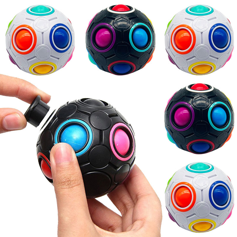 クロスボーダー益智小サッカー玩具12穴球減圧知能押し玩具指先ルービックキューブ魔力虹
