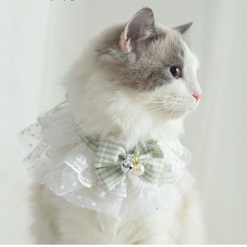 新しいレースのペットは首の首輪を囲んでいます。犬のよだれタオルの首輪はかわいいお姫様風猫のよだれ飾りです。