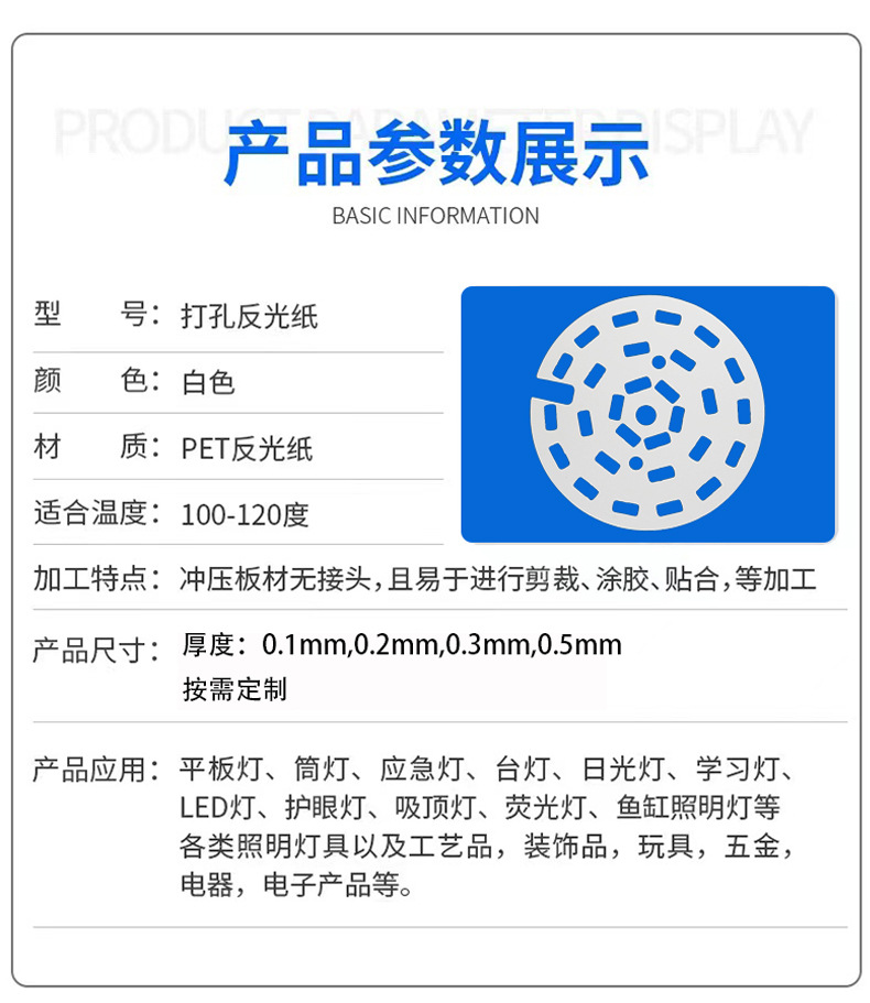 Pet反射紙ul筒灯反射紙バックシートledパネルランプ灯具バックシート自己粘着反射膜成形